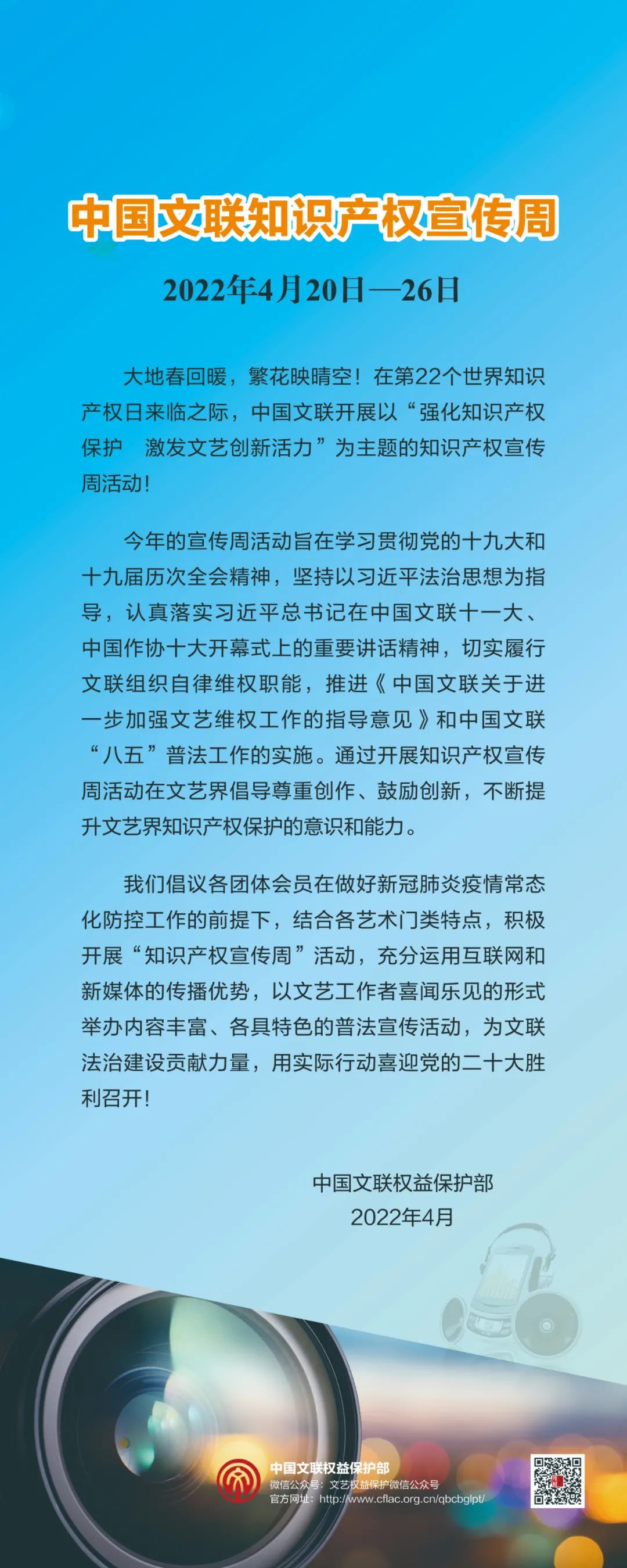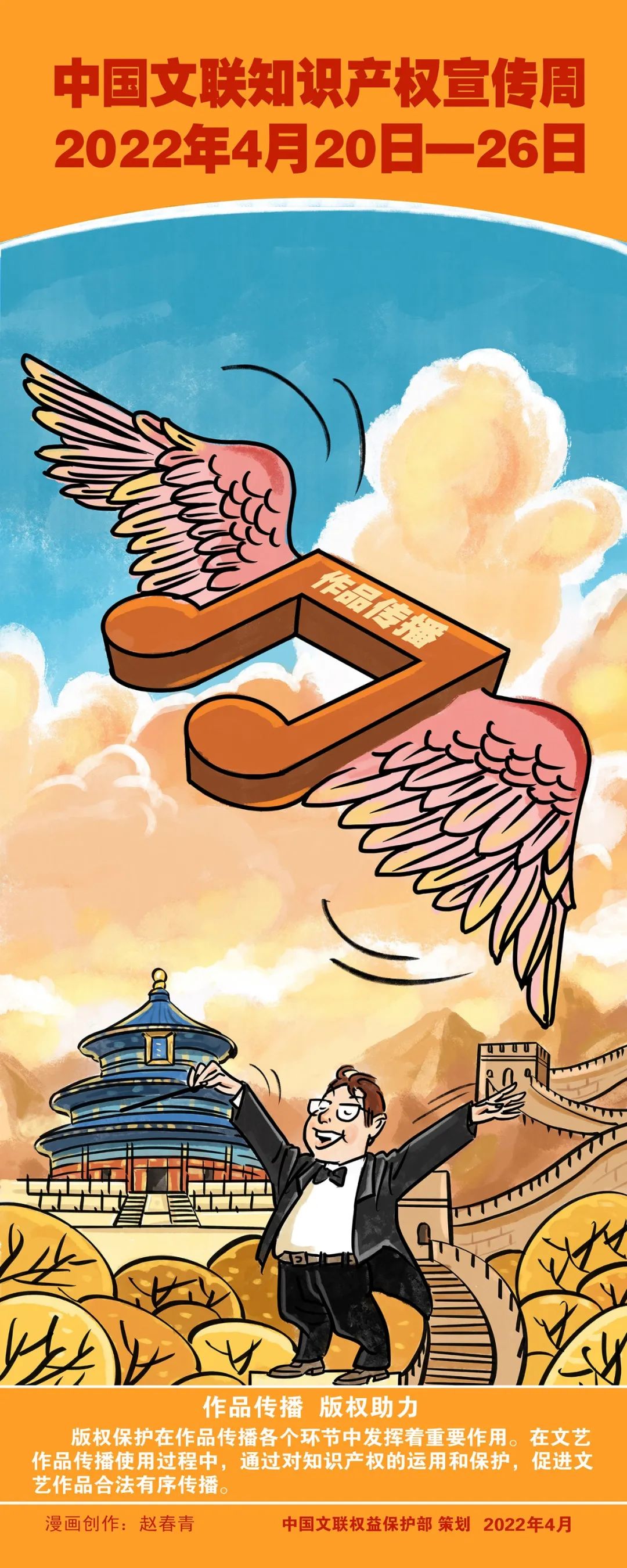 在第22个世界知识产权日来临之际,“半岛公司官方网站入口查询知识产权宣传周”活动于2022年4月20日正式启动。半岛公司官方网站入口查询权益保护部围绕“强化知识产权保护 激发文艺创新活力”主题策划制作了宣传海报漫画,旨在学习贯彻党的十九大和十九届历次全会精神,坚持以习近平法治思想为指导,认真落实习近平总书记在半岛公司官方网站入口查询十一大、中国作协十大开幕式上的重要讲话精神,切实履行文联组织自律维权职能,推进《半岛公司官方网站入口查询关于进一步加强文艺维权工作的指导意见》和半岛公司官方网站入口查询“八五”普法工作的实施。通过开展知识产权宣传周活动在文艺界倡导尊重创作、鼓励创新,不断提升文艺界知识产权保护的意识和能力。