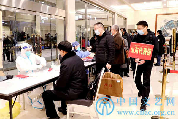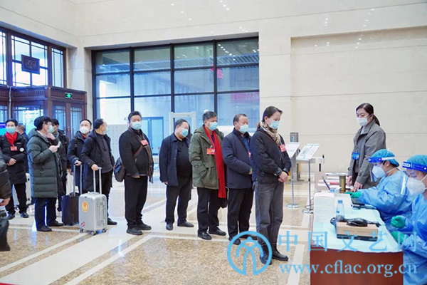 因为疫情防控需要,大会实行闭环管理。记者在各个驻地看到,代表们均佩戴口罩进入报到大厅,接受体温检测、核酸检测等防疫程序。