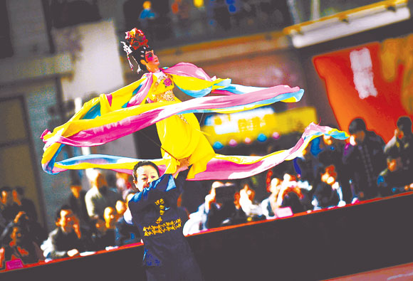 4月6日,第四届西部非物质文化遗产展演系列活动在西安市大唐西市举行。该活动用丰富的民俗表演、手工技艺、民间绝活、特色美食等为古城市民送上一场精彩纷呈的文化大餐。图为演员在开幕式上表演木偶戏。