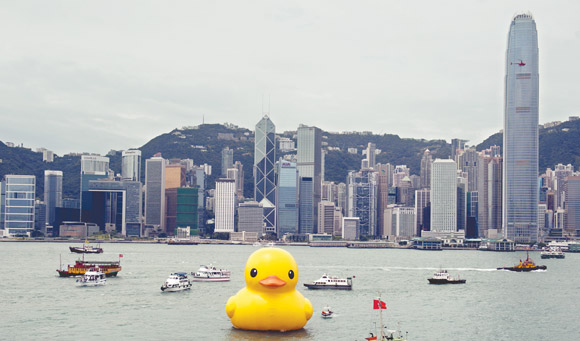 当日,由荷兰概念艺术家创作的巨型橡皮鸭在香港展出。这只黄色的充气橡皮鸭长18米,宽和高均为15米,由3名工人花费3周时间缝合完成,需要4个充气机工作半小时才能完成充气。自2007年以来,这只巨型黄色鸭子已经到访过世界各地的12座城市。据悉,橡皮鸭自5月2日起直到6月9日将会停靠在海港城海运码头,供游人观赏。