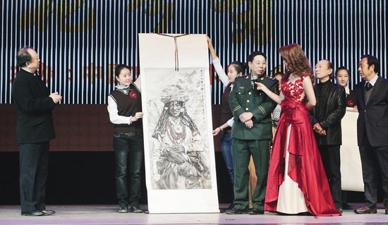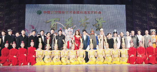 赵实、李屹、杨承志、夏潮等领导与晚会演职人员合影