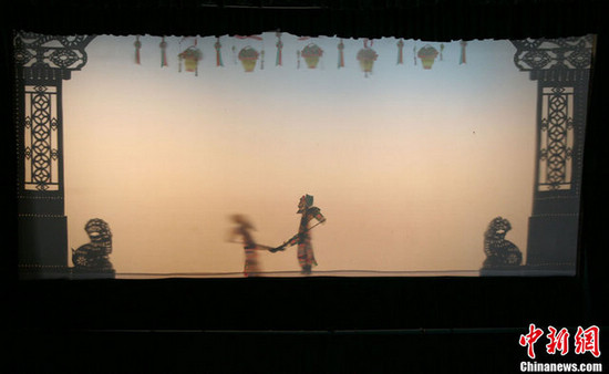 5月14日,浙江海宁盐官景区皮影戏馆内,皮影戏艺人演出古老的中国式动画——皮影戏。据悉,海宁皮影戏源于南宋时期,它随宋室的南迁而流传江南,至今已近900年历史,是中国皮影序列的重要分支。继2006年列入国家级非遗名录后,2011年底,海宁皮影戏作为中国皮影戏的重要组成部分,入选世界人类非物质文化遗产名录。