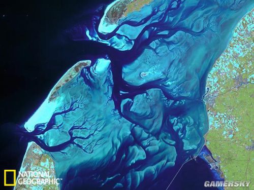 荷兰附近瓦登海( Wadden Sea)的海岸上,一条条冲沟穿过沙滩,好似一条条海蛇。