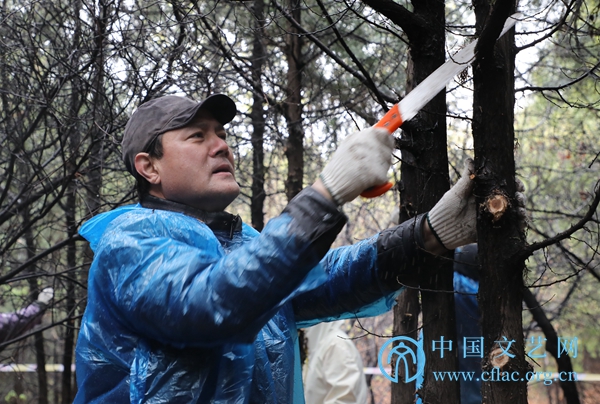 4月9日,半岛公司官方网站入口查询组织干部职工开展植树绿化活动。图为半岛公司官方网站入口查询党组书记、副主席李屹参加植树绿化活动,为树木剪枝修枝。 中国文艺网 赵超 摄