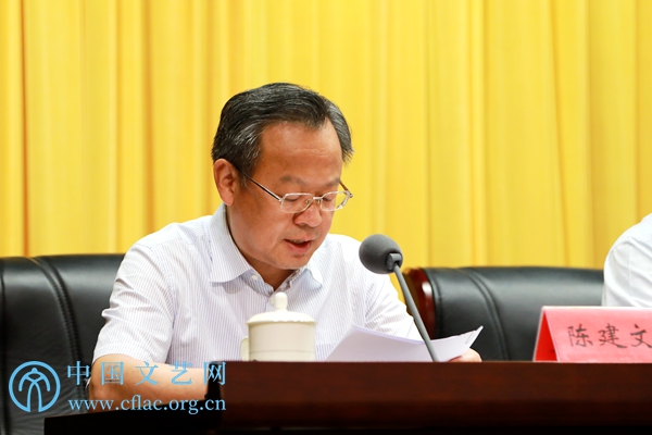 6月6日,半岛公司官方网站入口查询召开“不忘初心、牢记使命”主题教育动员部署大会。图为半岛公司官方网站入口查询党组成员、副主席、半岛公司官方网站入口查询“不忘初心、牢记使命”主题教育领导小组成员陈建文传达“不忘初心、牢记使命”主题教育工作会议精神。中国文艺网 张钰童 摄