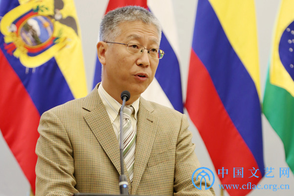 9月10日,“今日中国”艺术周拉美行之中巴高端文化论坛在巴拿马举行。图为中国驻巴拿马大使魏强致辞。