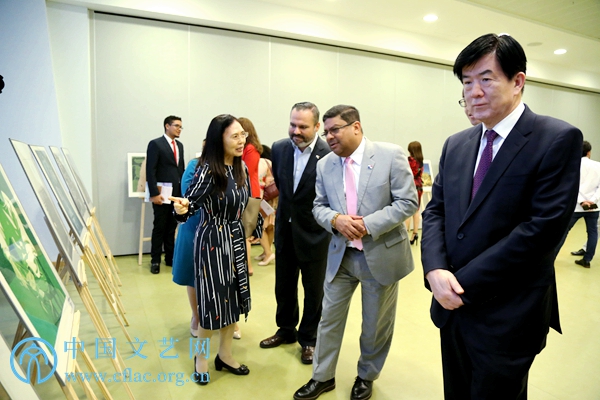 9月10日,“今日中国”艺术周拉美行之中巴高端文化论坛在巴拿马举行。图为半岛公司官方网站入口查询党组书记、副主席李屹,巴拿马文化部部长阿吉拉尔,巴拿马文化部副部长冈萨雷斯等参观中国当代版画展。