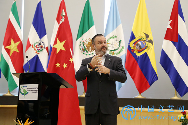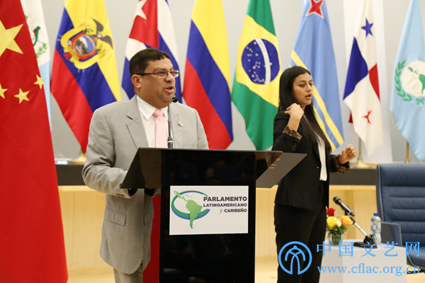 9月10日,“今日中国”艺术周拉美行之中巴高端文化论坛在巴拿马举行。图为巴拿马文化部副部长冈萨雷斯致辞。