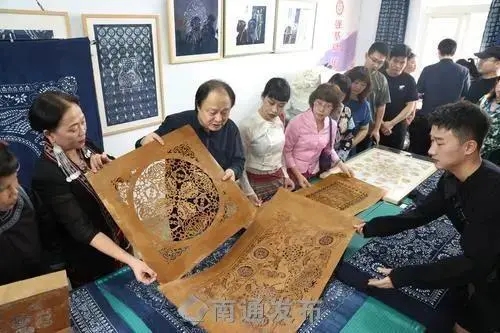 中国民间文艺家协会微信公众号报道:9月21日,作为“非遗扶贫”的一项创举,文旅部、教育部、人社部中国非遗传承人群研培计划《南通蓝印花布印染技艺研修班》开班暨“吴元新国家级技能大师工作室”揭牌仪式在江苏南通大学举行。