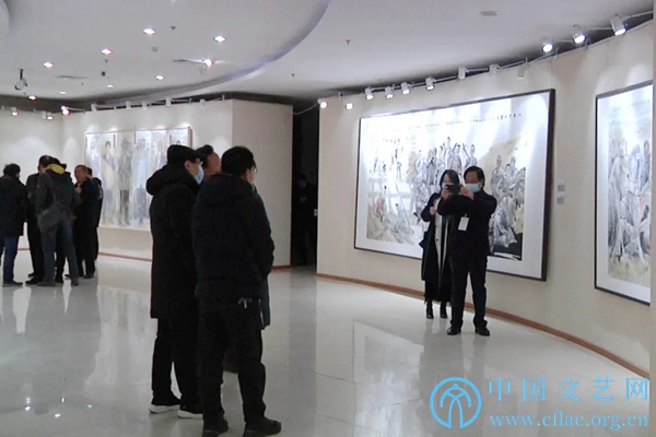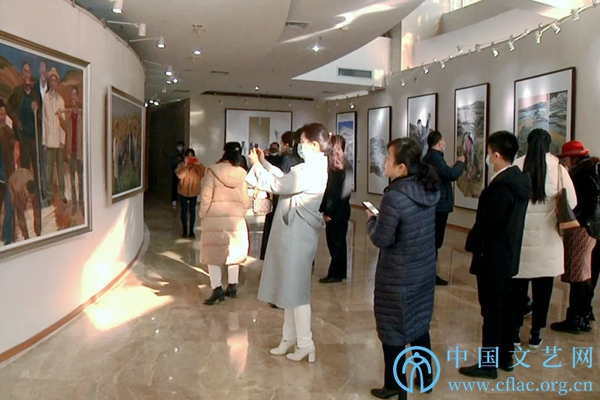 12月4日,为时代楷模立像——八步沙“六老汉”三代人专题美术作品展(北京展)在京开幕。图为开幕式现场。