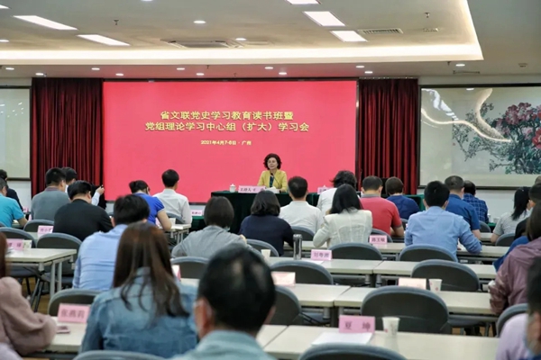 广东省文联举办党史学习教育读书班暨党组理论学习中心组(扩大)学习会。采取集中学习和个人自学相结合、研读原著和学习辅导相互结合的方式,认真推进党史学习教育走深走实,引导党员干部进一步感悟思想伟力,牢记初心使命,继往开来、开创新局。