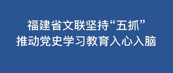 福建省文联坚持“五抓”,推动党史学习教育入心入脑。福建省文联坚持突出重点、抓住关键、用好资源、发挥优势、学思践悟,通过抓党组学习、抓专题培训、抓现场教学、抓自主学习、抓学习延伸,推动党史学习教育入心入脑。