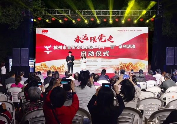 杭州市文联参与举办“永远跟党走”——杭州市宣传文化系统“十个一百”系列活动。“十个一百”包括百部红色经典电影免费点、百部红色经典电视剧邀您赏、百部公益电影主题放映进乡村、百场优秀舞台艺术作品巡回演等十个方面内容。