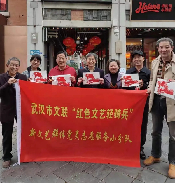 武汉市文联开展“学党史 感党恩 非遗文化映初心”党员教育流动微课堂。武汉市文联红色文艺轻骑兵新文艺群体党员志愿服务小分队与商圈、街道党员一起上党课,通过剪纸作品讲述红色故事,重温革命历程,在感受传统文化的同时加深对党的热爱。