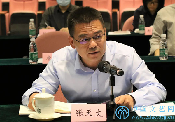 9月29日,《2021中国艺术发展报告》编撰工作启动会在京召开。图为中国音协分党组成员、副秘书长张天文交流发言。