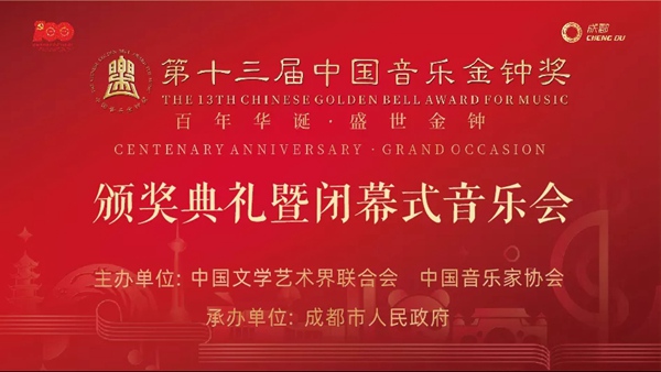 10月26日晚,由中国文学艺术界联合会、中国音乐家协会主办,成都市人民政府承办的第十三届中国音乐金钟奖颁奖典礼暨闭幕式音乐会在四川成都举办。