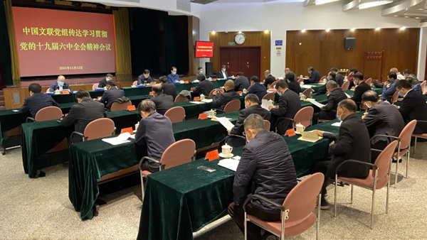 内蒙古文联召开党组理论中心组(扩大)学习会议,学习贯彻党的十九届六中全会精神。会议强调,内蒙古各文艺家协会和文联机关各部门、各直属单位要通过多种形式,把全会精神及时传达到全体党员干部和职工中;要充分发挥职能作用,积极宣传贯彻落实全会精神。
