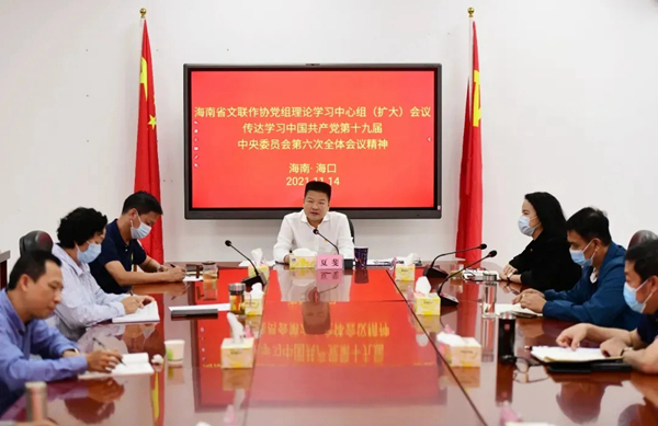 海南省文联作协党组召开理论中心组(扩大)学习会议,传达学习党的十九届六中全会精神。海南省文联作协党组召开理论中心组(扩大)学习会议,传达学习党的十九届六中全会精神,号召广大作家艺术家以实际行动和实干实绩体现心怀“国之大者”、坚决做到“两个维护”,迅速掀起海南文艺界学习宣传贯彻全会精神热潮,奋力谱写自贸港文艺繁荣新篇章。