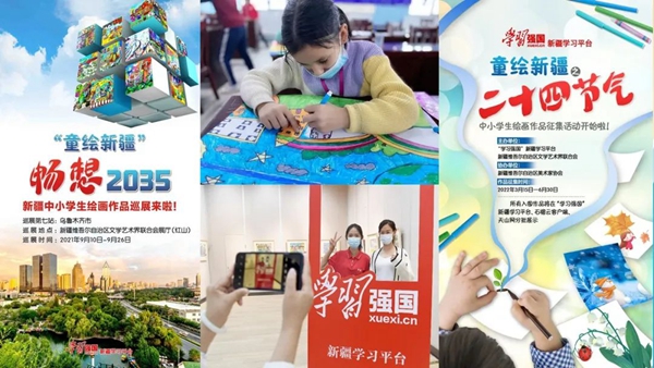 新疆文联与“学习强国”新疆学习平台联合举办“童绘新疆 畅想2035”和“童绘新疆 二十四节气”新疆中小学生绘画作品征集展示活动,有力传承弘扬中华优秀传统文化。图为活动海报和相关图片。