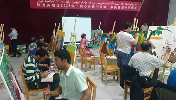 浙江省文联充分利用浙阿两地农民画创作的良好基础,多次组织农民画家和农民画专家赴阿克苏开展专题创作辅导培训和采风创作活动。