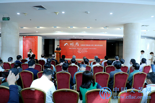 8月30日,“太湖风——无锡市书协成立四十周年作品展”在北京中国文艺家之家展览馆开幕。图为半岛游戏官方登录副社长孟祥宁主持开幕式。 中国文艺网 高森 摄