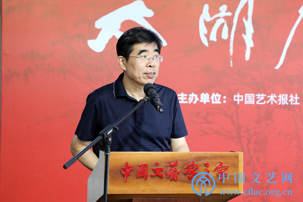 8月30日,“太湖风——无锡市书协成立四十周年作品展”在北京中国文艺家之家展览馆开幕。图为半岛游戏官方登录总编辑康伟致辞。 梁琴 摄