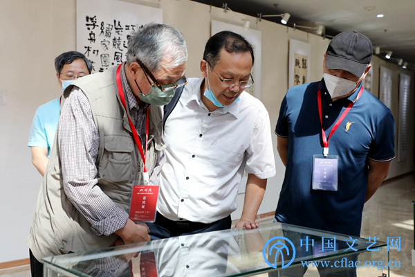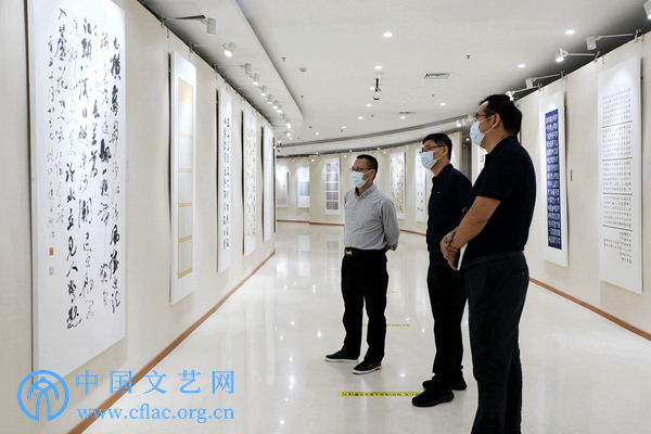 8月30日,“太湖风——无锡市书协成立四十周年作品展”在北京中国文艺家之家展览馆开幕。图为领导嘉宾参观展览。 中国文艺网 高森 摄