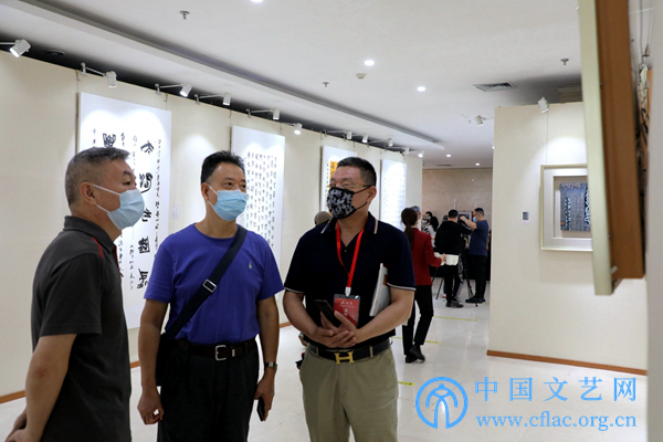 8月30日,“太湖风——无锡市书协成立四十周年作品展”在北京中国文艺家之家展览馆开幕。图为展览现场。 中国文艺网 高森 摄