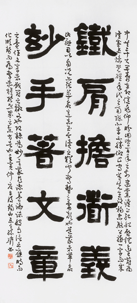 无锡市书协主席孙璘介绍,展览汇集无锡书法界老中青三代书法家,堪称无锡书界最强阵容,其中既有当代无锡书坛的标志性人物,也有一批功底扎实、颇具潜力的后起之秀,展出作品100件,其中书法作品75件、篆刻作品19件、刻字作品6件,作品以歌颂无锡的历史人文、自然风光为主题,形式多样,内容丰富,是无锡书法界长期以来植根传统、传承经典、勇于创新实践的成果,既显示了深厚扎实的艺术功力,又呈现了创新发展的新颖形式。此外,展览展出了《晋唐名帖考辨》《名帖考》、三卷本《无锡书法论文集》、《敦煌书法史》丛书、《楚默全集》等一系列无锡书法理论研究成果,展现了无锡市书协坚持书法创作与理论研究工作齐头并进所取得的成绩。