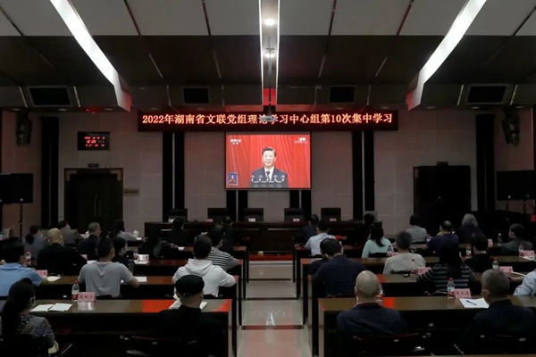 湖南省文联举行党组理论学习中心组第10次集中学习,集中收看党的二十大开幕会实况直播,聆听习近平总书记代表第十九届中央委员会向大会作的报告。大家一致认为,在收看党的二十大开幕会、聆听习近平总书记所作的报告后,倍感振奋、倍受鼓舞、倍强信心、倍增力量,充分相信全面建设现代化国家、全面推进中华民族伟大复兴的宏伟目标一定会实现。