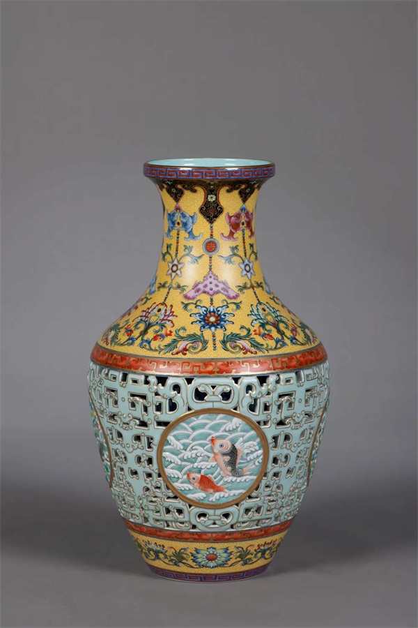 《仿清乾隆粉彩“吉庆有余”纹镂刻瓶》 阳士琦