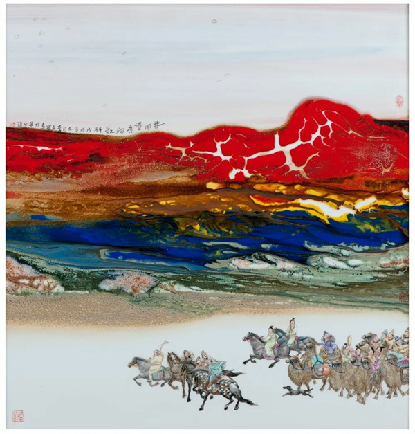 《春风得意踏歌行》 高温颜色釉墨彩瓷板 李文跃