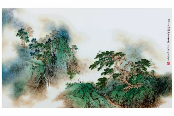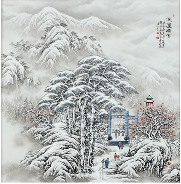 《匡庐瑞雪》粉彩瓷板 欧阳敏