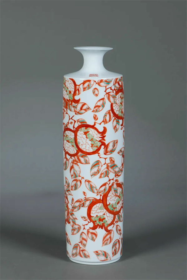 《中国符号之榴开百子》 陶瓷红绿彩瓷瓶 付丹