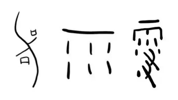 以在龟甲和兽骨上刻字的特殊方式记录生活日常,宛如“简笔画”的风趣符文透露出商代人的烟火气。从左到右依次为记录气象状况的甲骨文“雷”“雨”“雪”