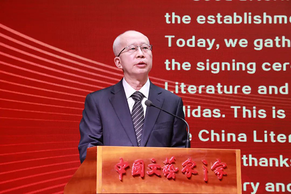 中国文学艺术基金会副理事长、秘书长向云驹和阿迪达斯大中华区董事总经理萧家乐签署战略合作备忘录