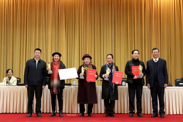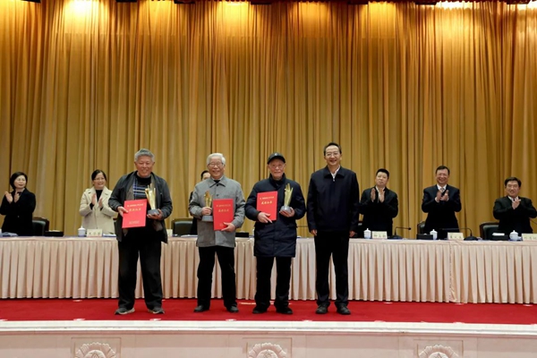 卿立新、夏义生为获得优秀文艺家奖的艺术家颁奖