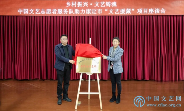中国文艺志愿者协会理事、杭州市文联秘书长、杭州市文艺志愿者协会副主席兼秘书长程育青与康定市委常委、宣传部长罗德强共同为杭州市文联康定市“创作采风基地”揭牌。