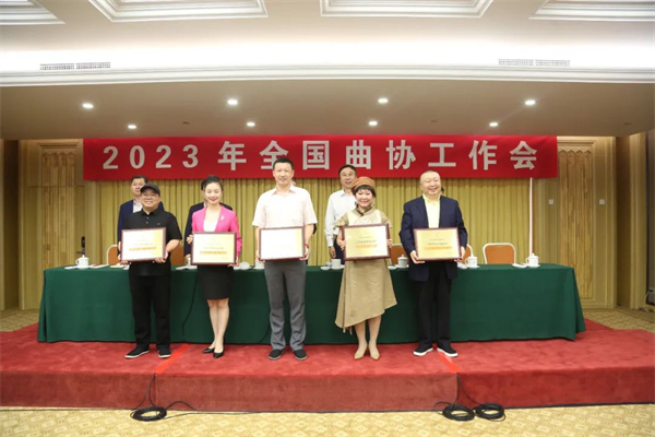 黄群宣读了表彰先进的决定,授予2022年工作表现突出的内蒙古曲协、四川省曲协“中国曲协优秀团体会员”称号,授予黑龙江省哈尔滨市曲协、江苏省宿迁市曲协、浙江省台州市路桥区曲协等单位“2022年度先进基层曲协组织”称号。