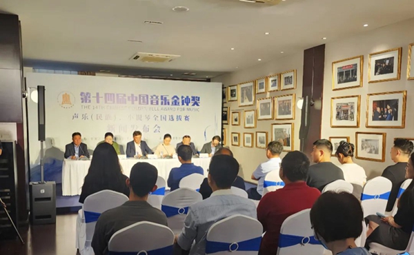 5月29日举行的第十四届中国音乐金钟奖声乐(民族)、小提琴全国选拔赛新闻发布会现场。