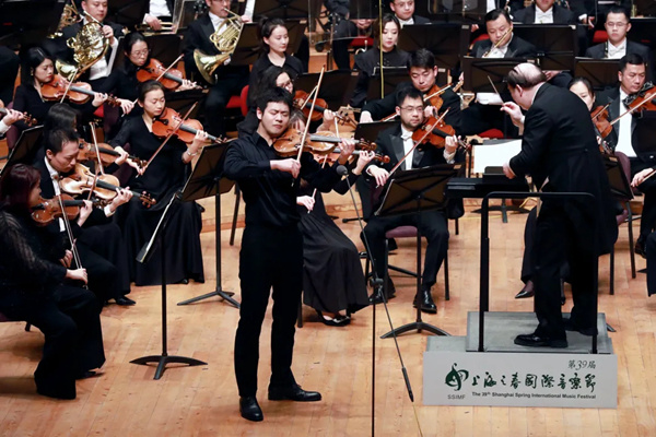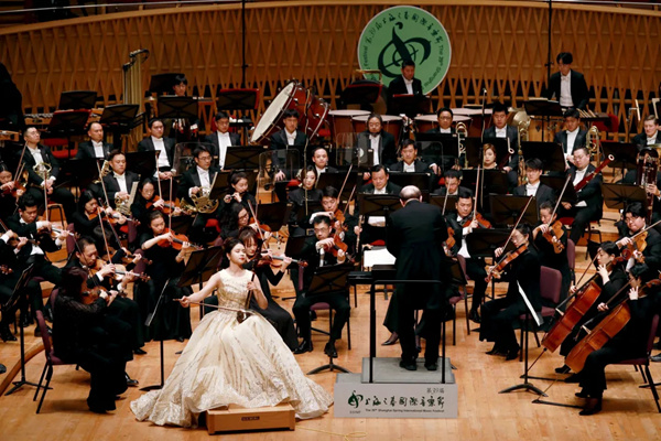 开幕演出在曲目设置上,呈现经典与新作的呼应,钢琴与乐队《红旗颂》、小提琴与乐队《阳光照耀着塔什库尔干》、管弦乐《鲜红的太阳》、二胡与乐队《第六二胡狂想曲》以及交响曲《新时代》,分别由作曲家吕其明、陈钢、周湘林、王建民、龚天鹏创作,在高扬时代主题、展示上海原创的同时,也体现了艺术的传承与创新;在规模上创下上海之春国际音乐节新纪录,乐队、合唱团成员总计350余人以交响合唱演出形式演绎新时代交响曲,以恢弘气势奏响“礼赞新时代”的乐章,振奋人心的激昂旋律,庆祝中华人民共和国成立75周年。为彰显“力推新人”的办节宗旨,此次开幕演出遴选了沪上三位新晋获得中国音乐金钟奖等重要奖项的乐坛新秀朱婧、王睿一、王山担纲独奏、独唱,他们倾情演绎的三首作品,以西藏、新疆、青海三个地区的大美风情为创作灵感,体现了上海与对口支援地区携手奋进的山海情深。