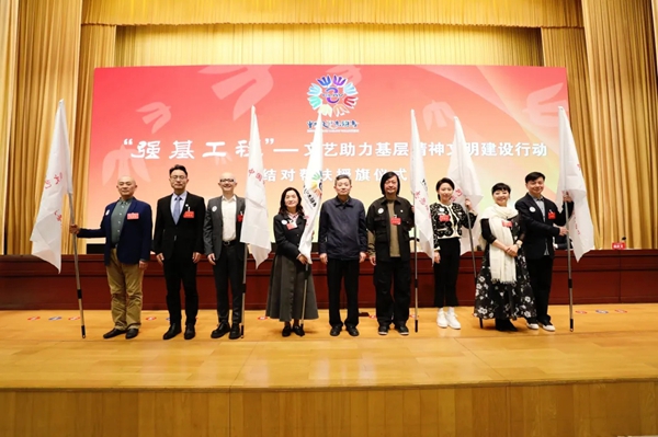 会上举行了“强基工程”结对授旗仪式。中国文艺志愿者协会副主席何加林、姚建萍,理事胡文阁、丁柳元、平安、张宜分别与全国部分高校、中小学、地市结对。