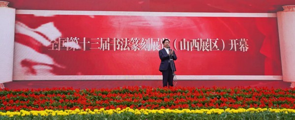张吉福宣布全国第十三届书法篆刻展览(山西展区)开幕。