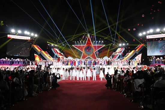 在中华人民共和国成立75周年、中央红军长征出发90周年之际,10月10日,第十四届中国民间艺术节开幕式文艺晚会在江西瑞金苏维埃纪念园红五星广场举办。