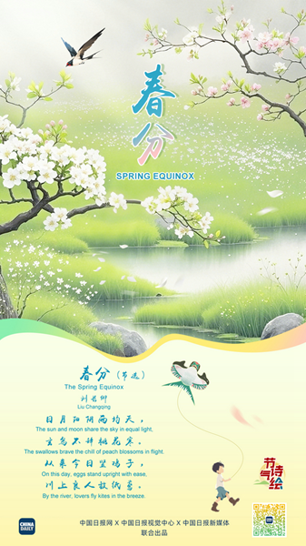 At Spring Equinox, day and night are aligned, On this fourth Solar Term, the sun shines directly above the equator, bringing equal daylight and darkness worldwide, hence its name. From this day forth, warmth embraces the land and blooms take flight. Life bursts, all towards nature's prime.