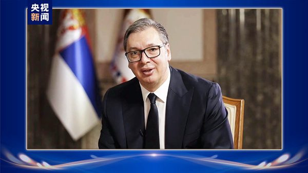 武契奇总统热烈欢迎习近平主席访问塞尔维亚。他表示,感谢中央广播电视总台为塞中友谊付出的巨大努力。塞尔维亚热情地欢迎总台,期待未来能以多种方式加强交流互鉴,推动钢铁般的塞中友谊迈上新台阶。