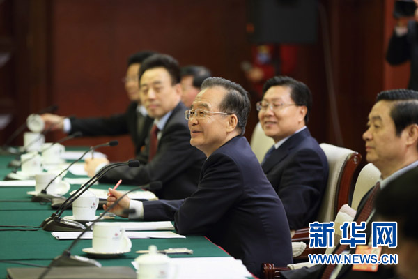 (两会授权发布)温家宝在四川代表团听取代表审议
