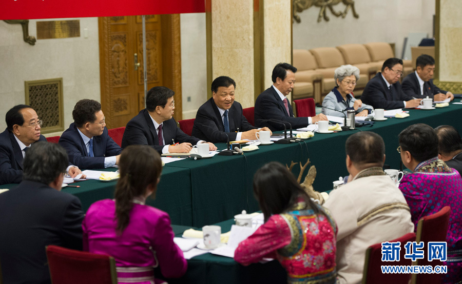 3月6日,中共中央政治局常委、中央书记处书记刘云山参加十二届全国人大一次会议内蒙古代表团的审议。 新华社记者 黄敬文 摄