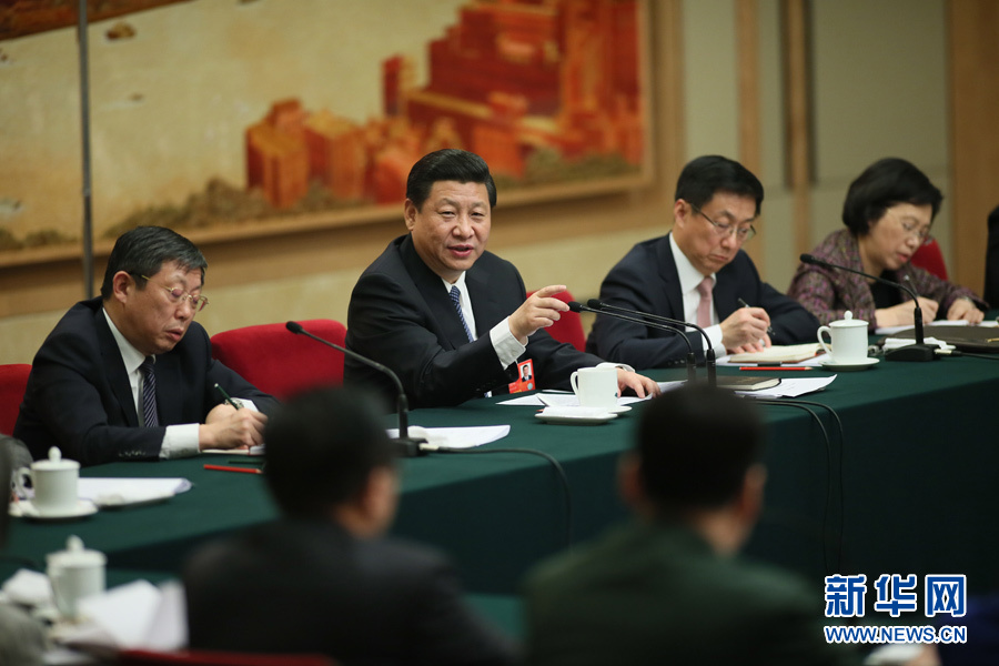 3月5日,中共中央总书记、中共中央军委主席习近平参加十二届全国人大一次会议上海代表团的审议。 新华社记者 兰红光 摄