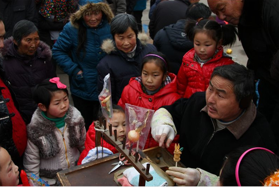 糖人是以熬化的蔗糖或麦芽糖做成的各种造型,有人物、动物、花草等。据说宋代即有糖人,多是平面造型,如同今天的糖画,时称戏剧糖果,后来也被称作稠糖葫芦、吹糖麻婆子、打秋千稠饴、糖宜娘、糖官人、糖宝塔、糖龟儿等。